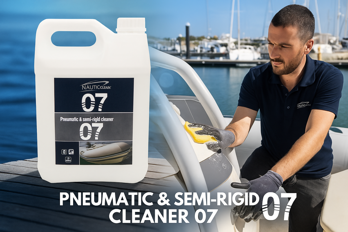 Le "Nettoyant Pneumatique et Semi-Rigide 07" est un produit d'entretien conçu spécifiquement pour les bateaux à boudins en PVC, Hypalon, Néoprène, Strongan et caoutchouc. La version de 5 litres est un format économique pour les usages fréquents ou les grandes surfaces.